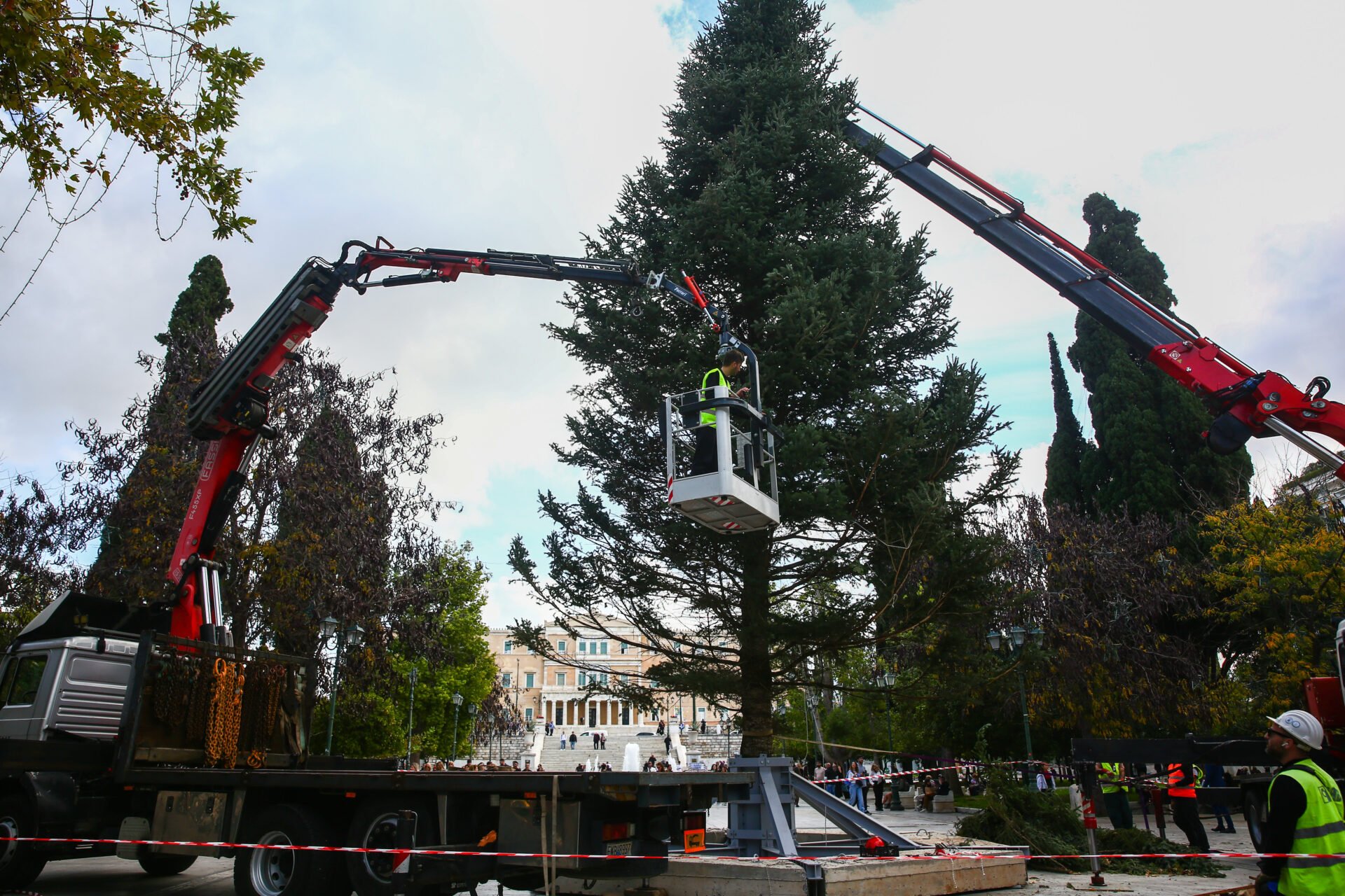 Το πρωί της Παρασκευής 21/11 έφτασε την πλατεία Συντάγματος και τοποθετήθηκε με έναν τεράστιο γερανό το Χριστουγεννιάτικο δέντρο που θα κοσμεί την πρωτεύουσα για τον επόμενο περίπου έναμιση μήνα.