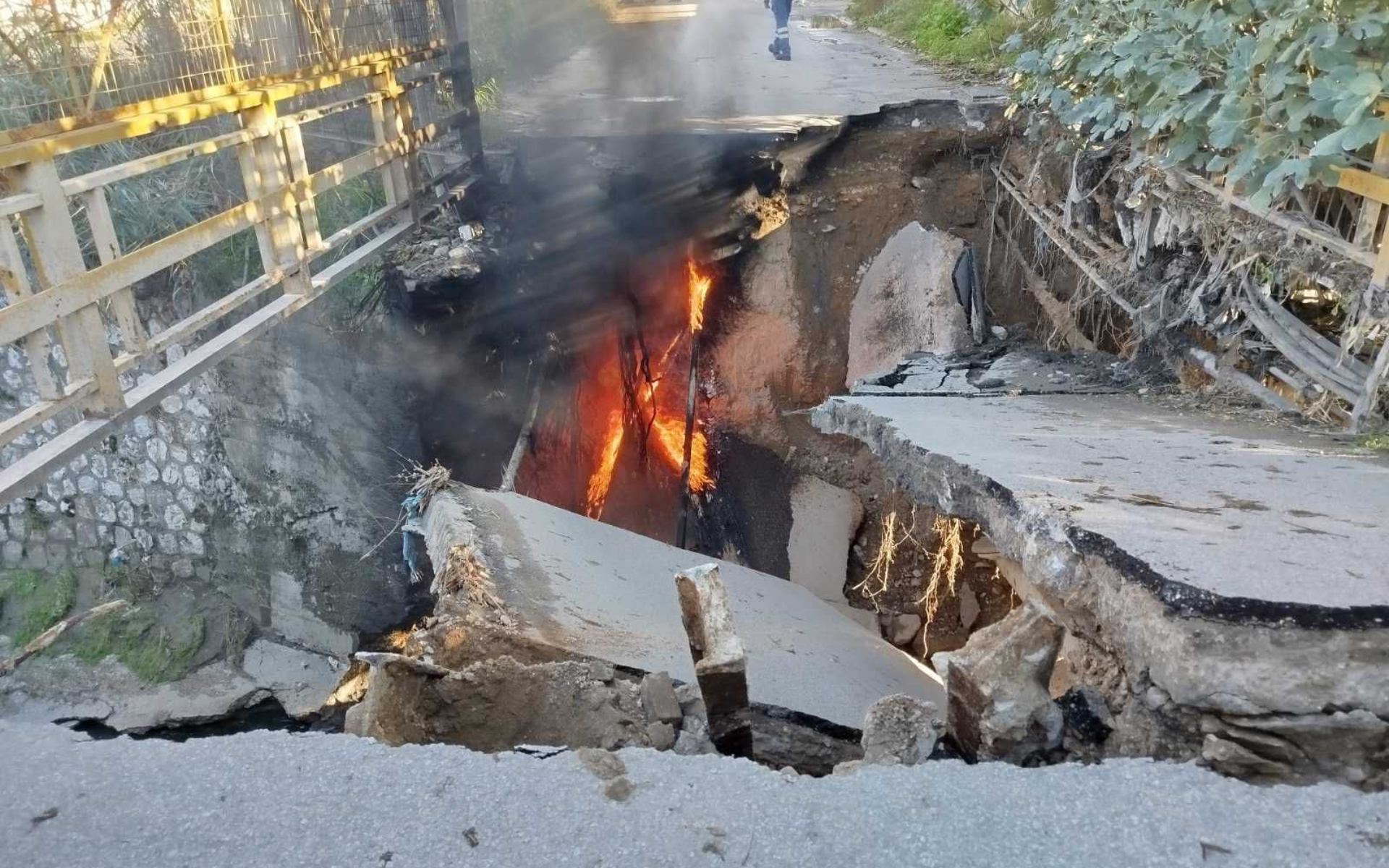 Υποχώρησε γέφυρα στο ρέμα Προφήτη Δανιήλ – Φωτιά στο σημείο