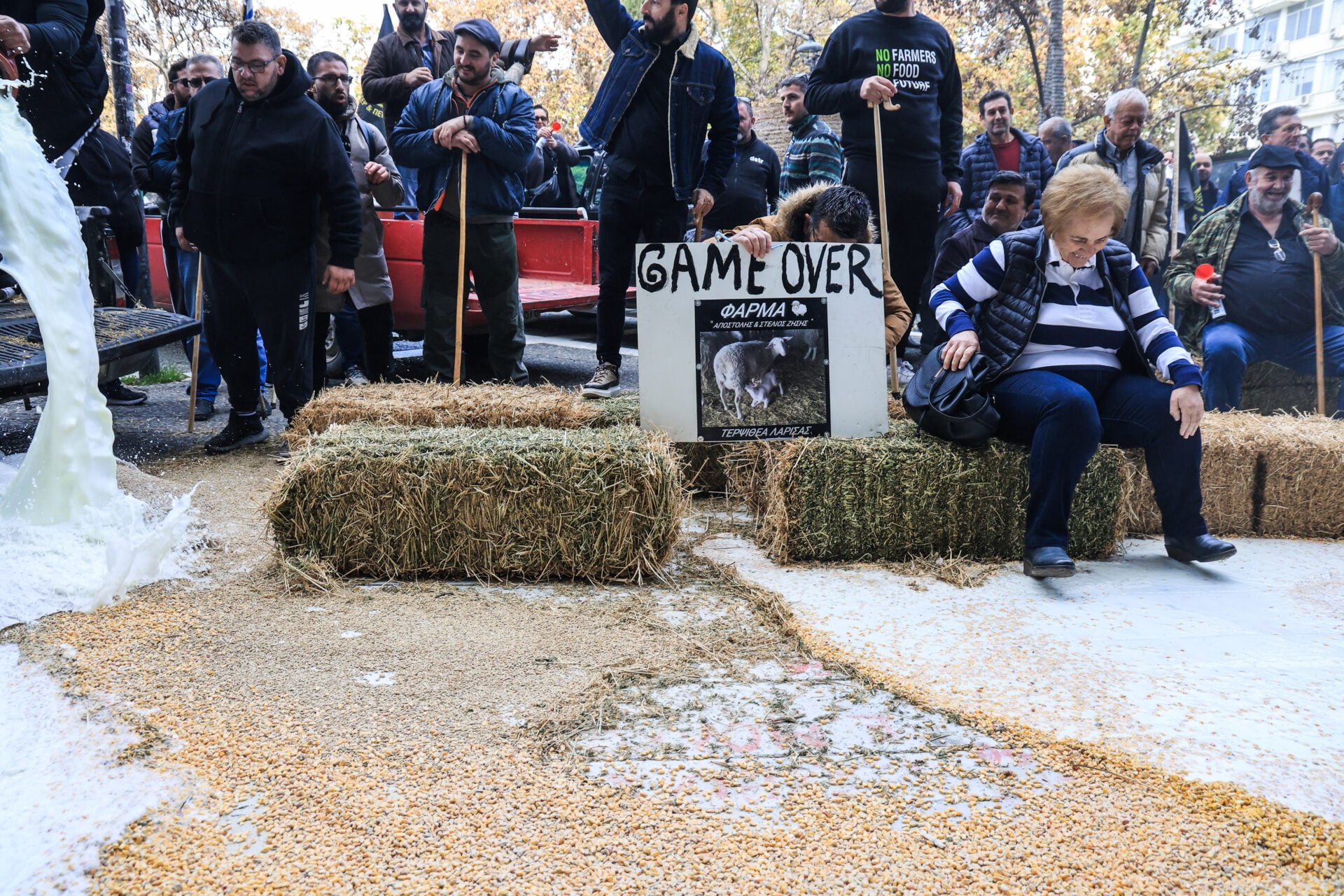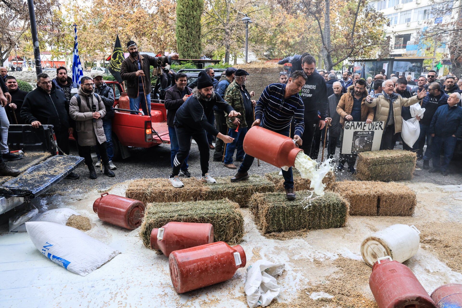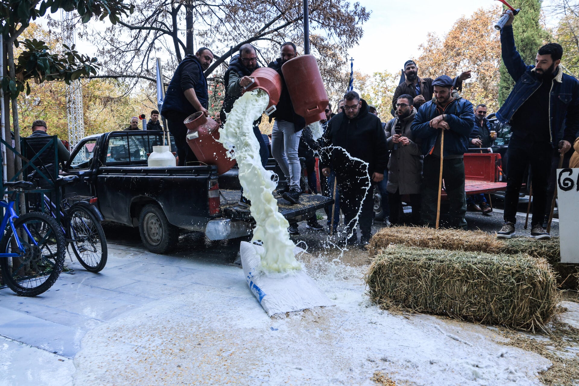 Ως μέτρο διαμαρτυρίας έχυσαν γάλατα στην Κεντρική πλατεία και έριξαν άχυρα και καλαμπόκι.