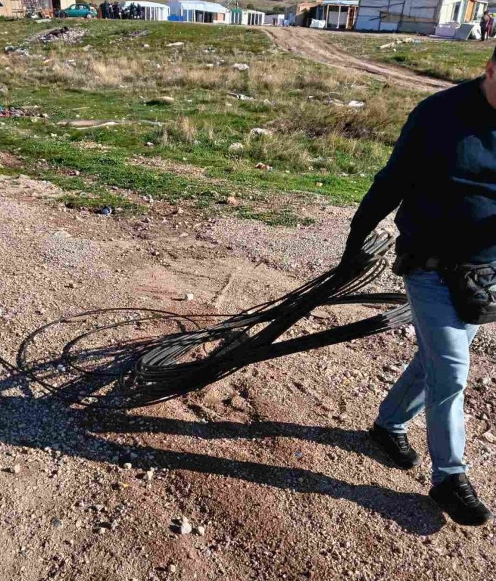 Οι αστυνομικοί προχώρησε σε αποξηλώσεις καλωδίων μήκους 1.100 μέτρων που χρησιμοποιούνταν για ρευματοκλοπές.