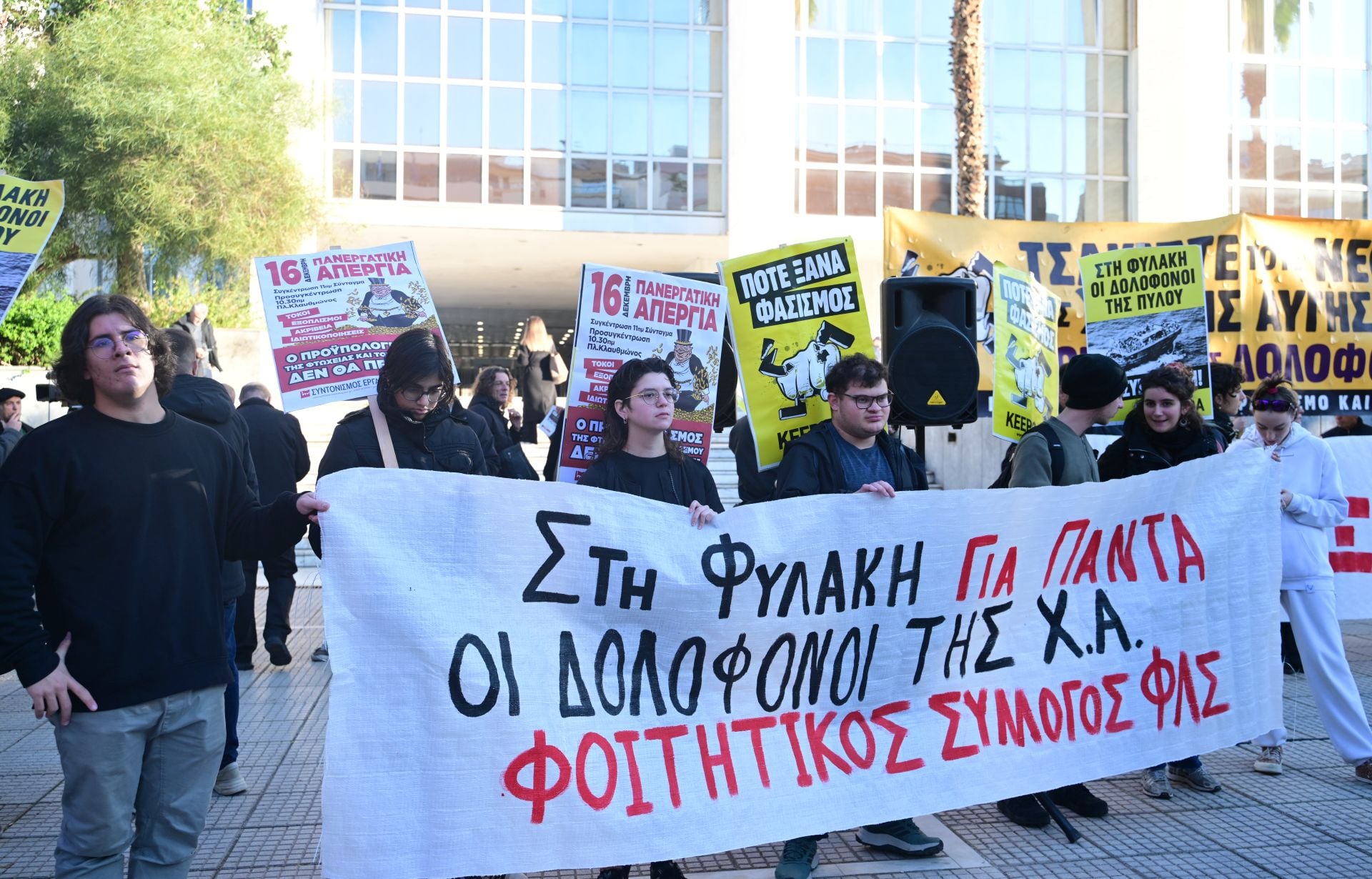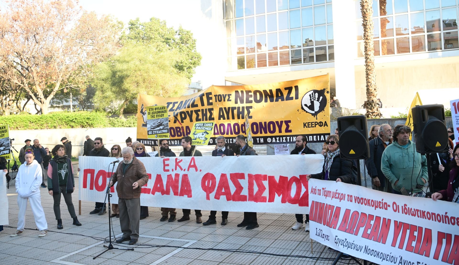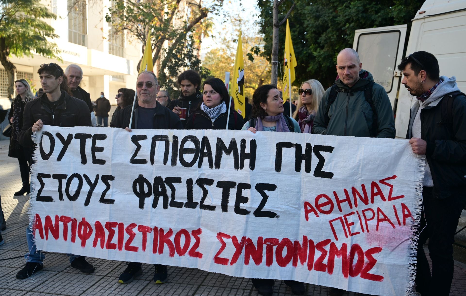 Νωρίτερα έξω από το δικαστήριο έγινε αντιφασιστική συγκέντρωση.