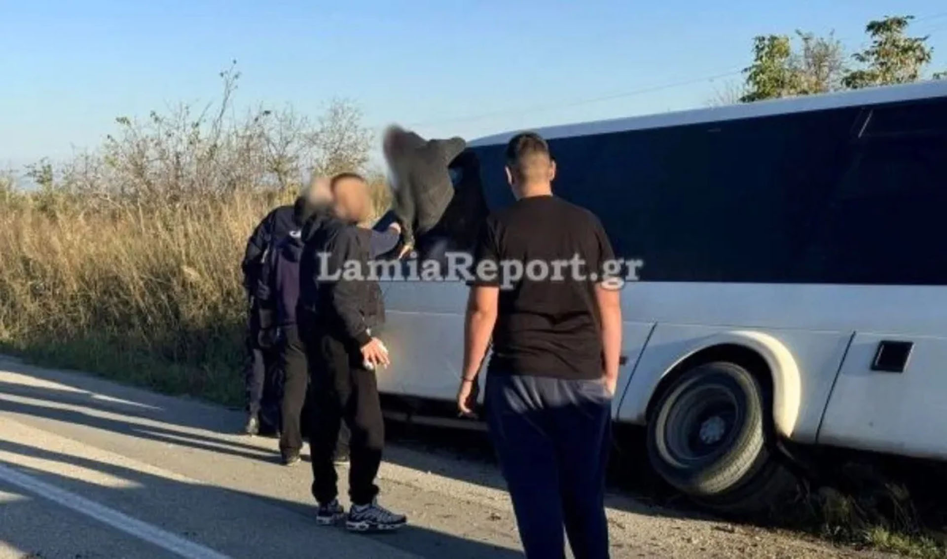 Σε χαντάκι κατέληξε σχολικό λεωφορείο στη Λαμία.