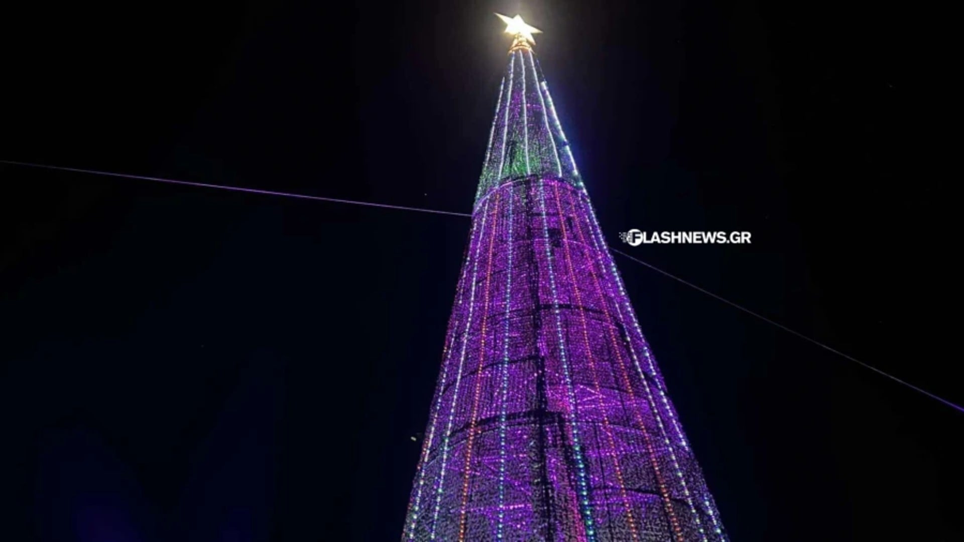 Στον Ομαλό φωταγωγήθηκε το ψηλότερο Χριστουγεννιάτικο δέντρο της Ελλάδας