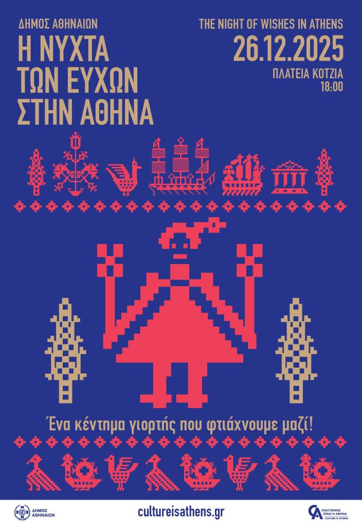 Η «Νύχτα των Ευχών», που είχε προγραμματιστεί για την παραμονή Χριστουγέννων στην πλατεία Κοτζιά, αναβάλλεται όπως αποφάσισε ο Δήμος Αθηναίων.