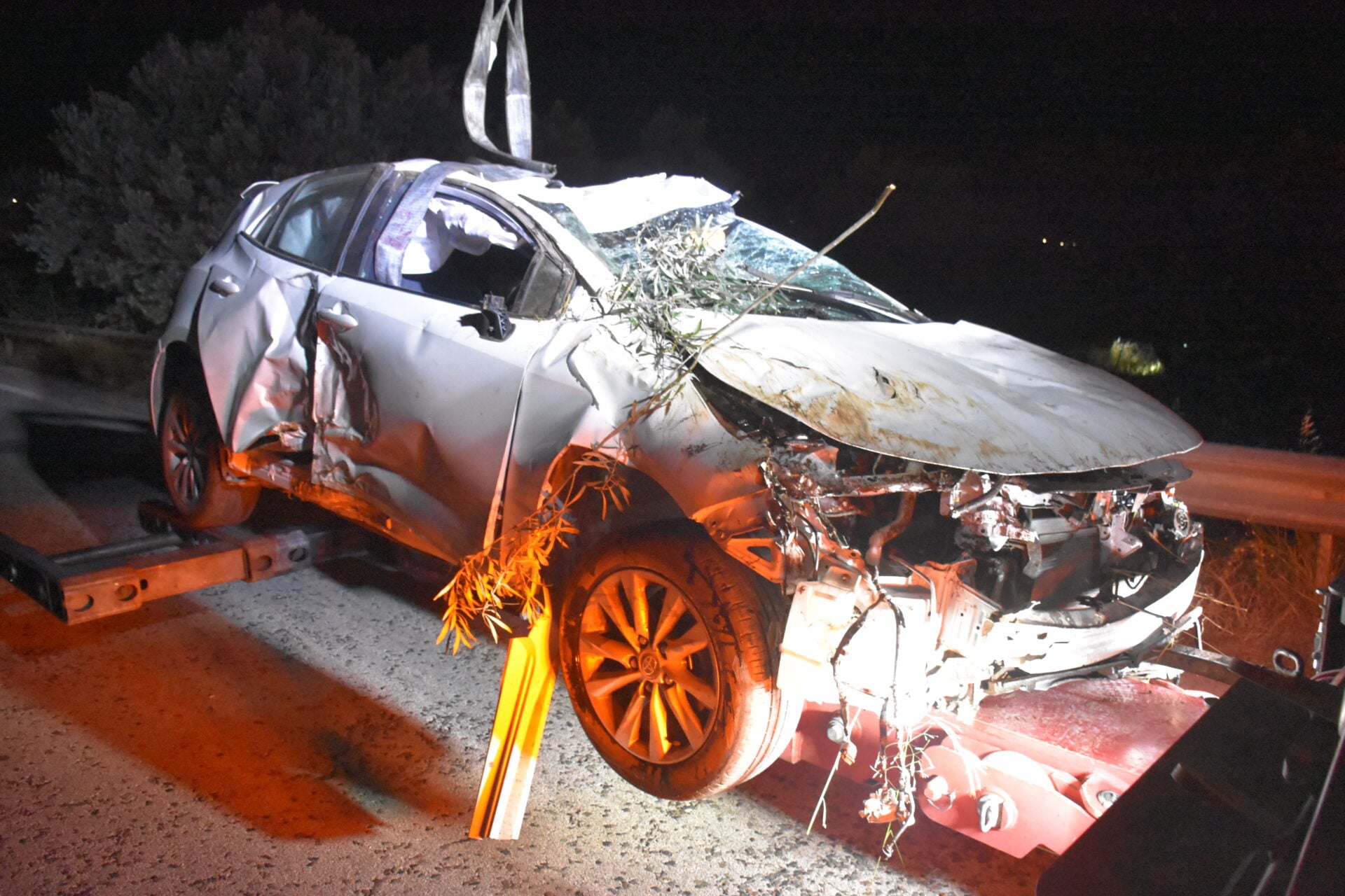 Η σύγκρουση ήταν τόσο δυνατή, που το Fiat ανατράπηκε και έκανε τούμπες μέσα στο δρόμο, με αποτέλεσμα τον τραυματισμό του ηλικιωμένου οδηγού του. Άμεσα κλήθηκε ασθενοφόρο του ΕΚΑΒ, το οποίο τον μετέφερε στα Επείγοντα του Νοσοκομείου Λαμίας, ευτυχώς χωρίς να κινδυνεύει η ζωή του.