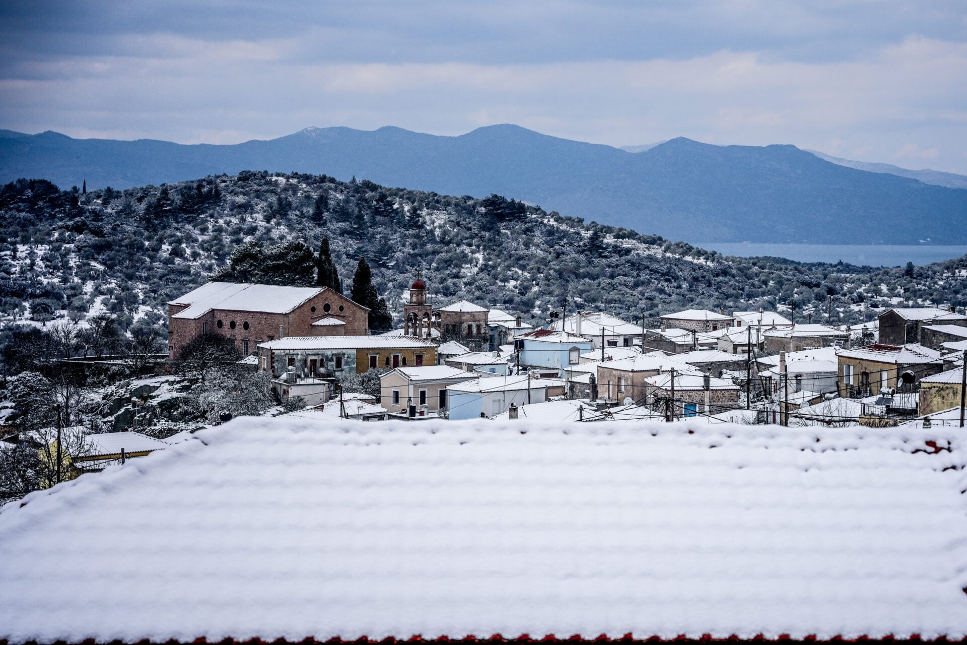 Αυτές οι χιονοπτώσεις σε νησιωτικές περιοχές είναι σπάνιο φαινόμενο, ειδικά σε επίπεδα κάτω από τα ορεινά.