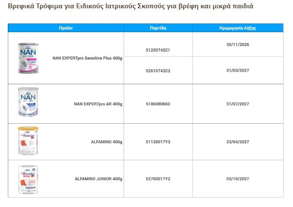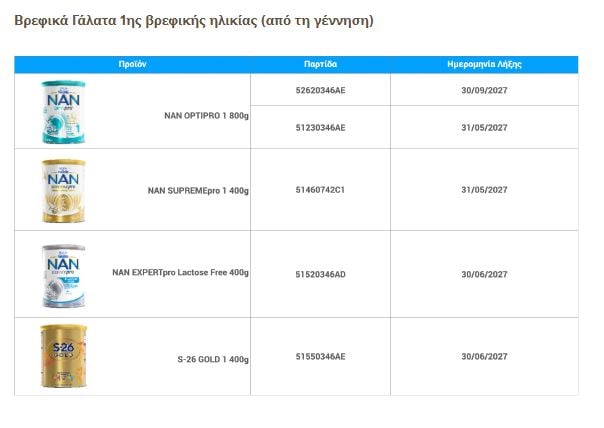Σε εθελοντική ανάκληση προϊόντων και συγκεκριμένων παρτίδων, που αφορούν βρεφικά γάλατα τα οποία διατίθενται στην ελληνική αγορά, αποφάσισε να προχωρήσει η Nestle.