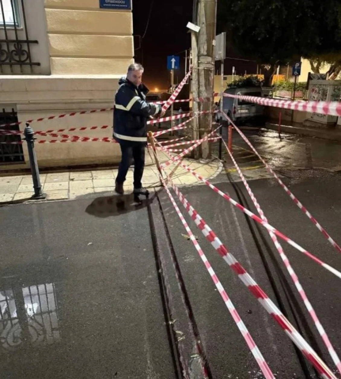 Άμεσα ενημερώθηκε η Πολιτική Προστασία του Δήμου Ηρακλείου και η Δημοτική Αστυνομία. Απέκλεισαν τον δρόμο για οχήματα και πεζούς, για λόγους ασφαλείας.