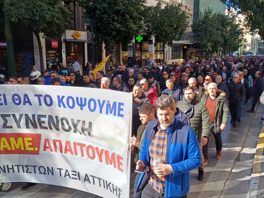 Ειδικότερα, στο πλαίσιο των μαζικών κινητοποιήσεών τους, λίγο μετά τις 12 οι απεργοί οδηγοί ταξί, οι οποίοι συγκεντρώθηκαν στα γραφεία του Συνδικάτου Αυτοκινητιστών Ταξί Αττικής (ΣΑΤΑ), ξεκίνησαν πεζή πορεία προς το Σύνταγμα.