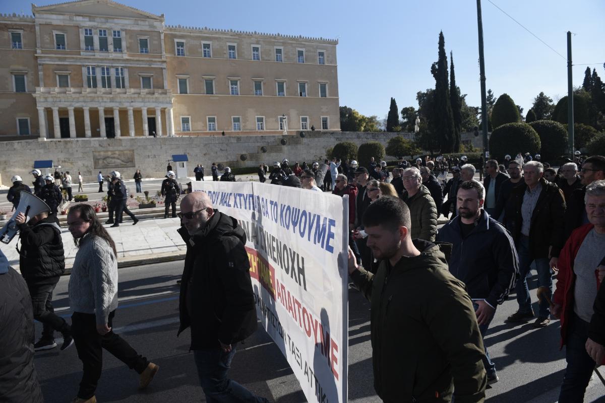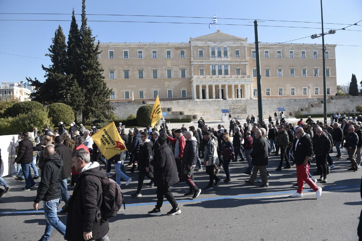 Πορεία διαμαρτυρίας προς την πλατεία Συντάγματος πραγματοποίησαν σήμερα το μεσημέρι οι αυτοκινητιστές ταξί, με σκοπό να επιδώσουν ψήφισμα σε μέλη του Κοινοβουλίου.
