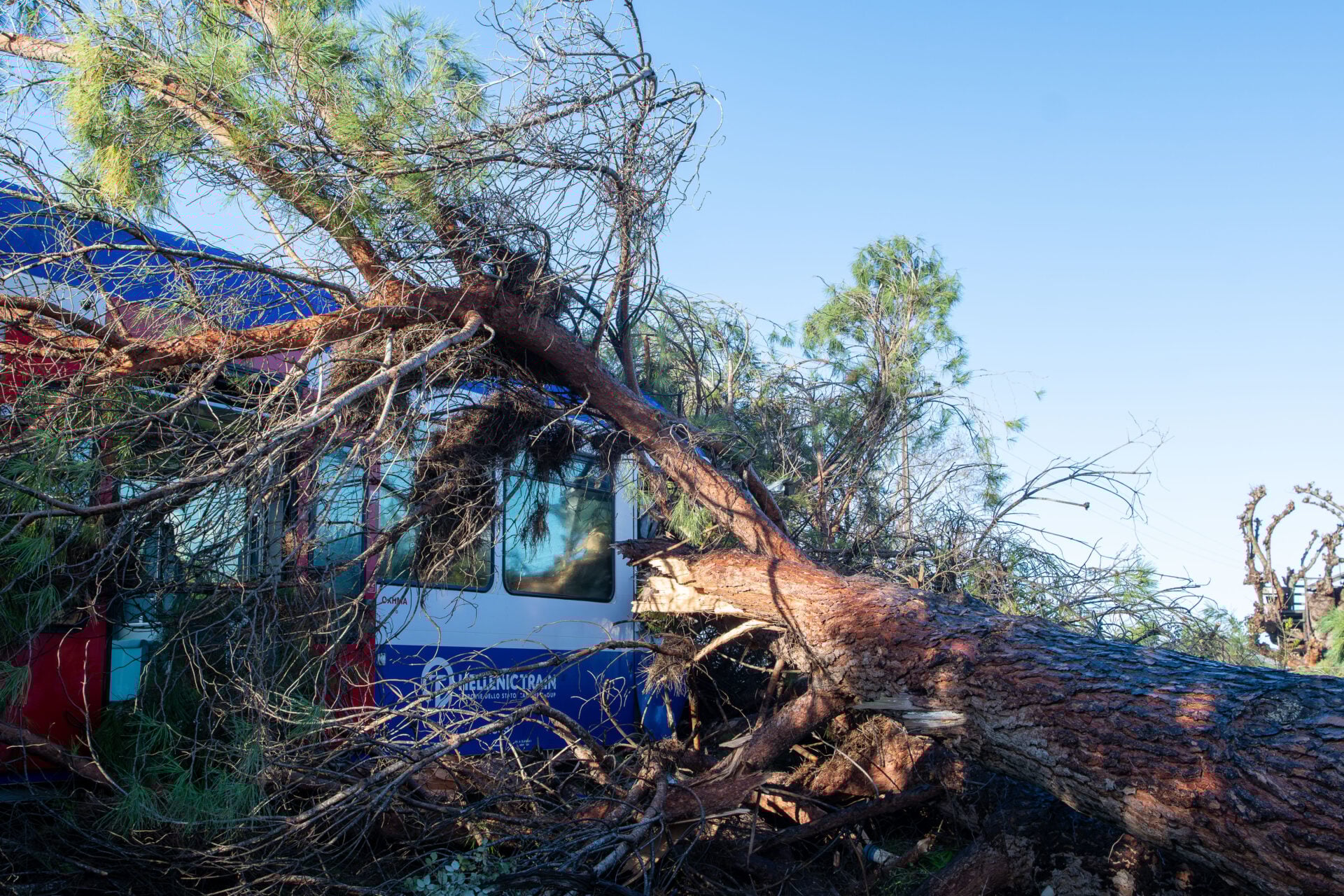 Το δέντρο έπεσε στο βαγόνι που βρίσκεται ο μηχανοδηγός ο οποίος τραυματίστηκε αλλά υπήρξαν και υλικές ζημιές.