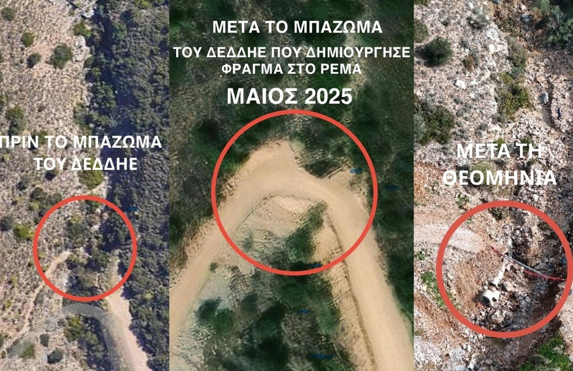 «Για να κάνει το έργο υπογειοποίησης του δικτύου του ο ΔΕΔΔΗΕ τον περασμένο Μάιο στον Υμηττό πάνω από την οδό Μετσόβου στην πόλη μας, μπάζωσε και έκλεισε τη ρεματιά στο σημείο που δείχνουν οι φωτογραφίες, 850 μέτρα περίπου πάνω από την οδό Μετσόβου.