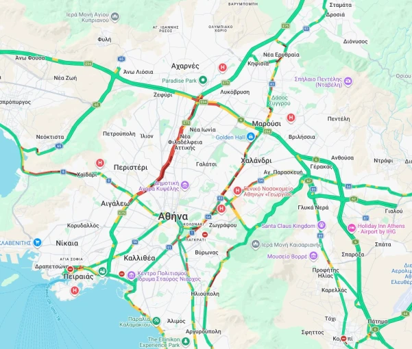 Την ίδια στιγμή, σοβαρές καθυστερήσεις σημειώνονται στη Λεωφόρο Αθηνών, στο τμήμα από τον Σκαραμαγκά έως το Χαϊδάρι, καθώς και στις Λεωφόρους Κηφισίας και Μεσογείων.