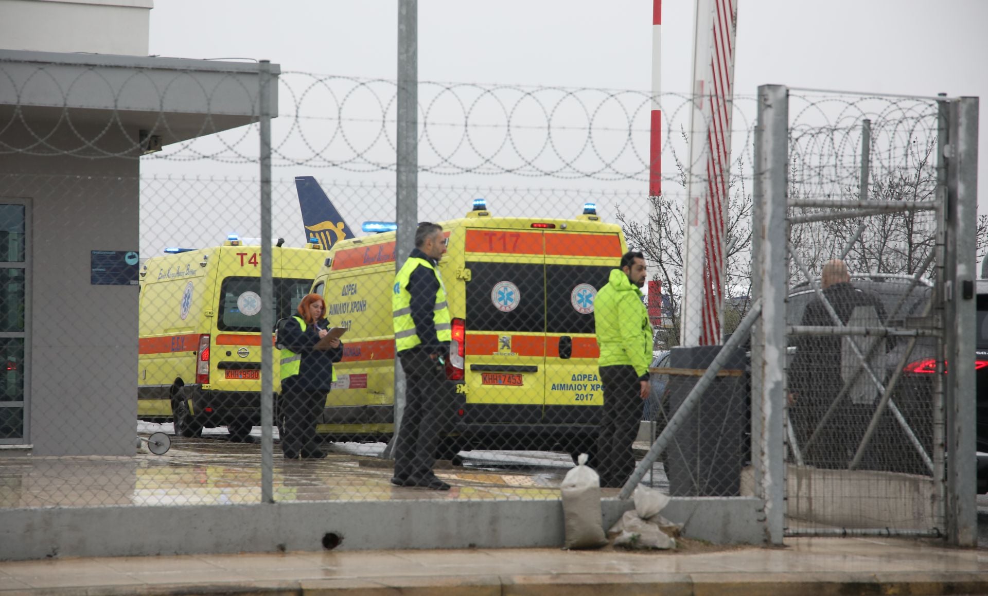 Στο αεροδρόμιο της Θεσσαλονίκης βρίσκονται και δύο ασθενοφόρα του ΕΚΑΒ για να παραλάβουν τους τραυματίες. Στο νοσοκομείο Παπαγεωργίου που θα μεταφερθούν όλα είναι έτοιμα για την υποδοχή τους.