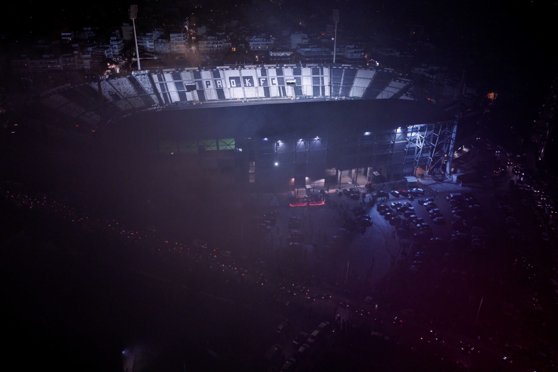 Στο γήπεδο της Τούμπας, η ατμόσφαιρα ήταν συγκλονιστική: φίλαθλοι δακρυσμένοι ανάβουν πυρσούς και αποχαιρετούν τους νεκρούς, ενώ η νύχτα φωτίζεται από τη συλλογική θλίψη και τη σεβαστική σιωπή. Οι επτά νεκροί, όπως τόνισαν οι παρευρισκόμενοι, «ζουν στις καρδιές μας και μας οδηγούν», δημιουργώντας ένα συμβολικό κύκλο μνήμης και τιμής για τα αδικοχαμένα παιδιά.