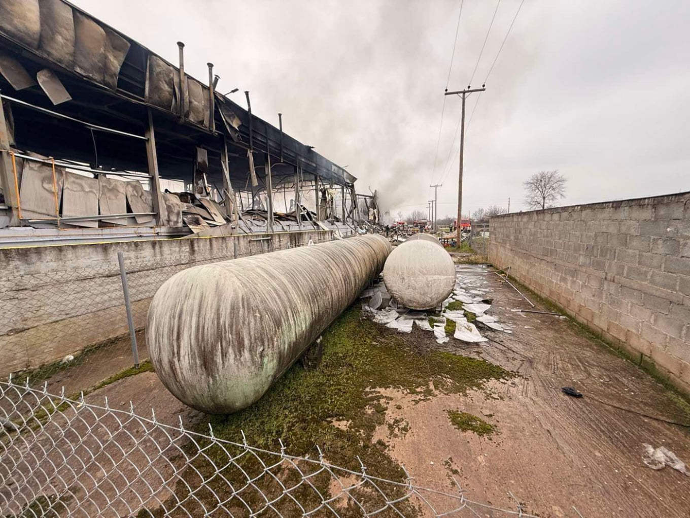 Όπως έχει επισήμως ανακοινώσει η Πυροσβεστική Υπηρεσία, η καταστροφική έκρηξη οφείλεται σε διαφυγή προπανίου από σωλήνα που μετέφερε το αέριο από τις δεξαμενές αποθήκευσης προς την παραγωγική μονάδα.