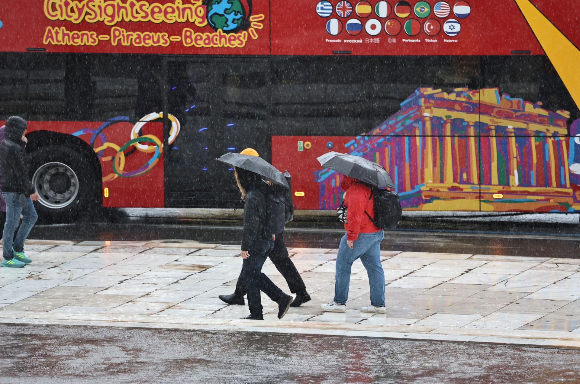 Άνοιξαν οι ουρανοί το μεσημέρι της Πέμπτης 5 Φεβρουαρίου στην Αττική όπως είχαν προβλέψει η ΕΜΥ και οι μετεωρολόγοι.