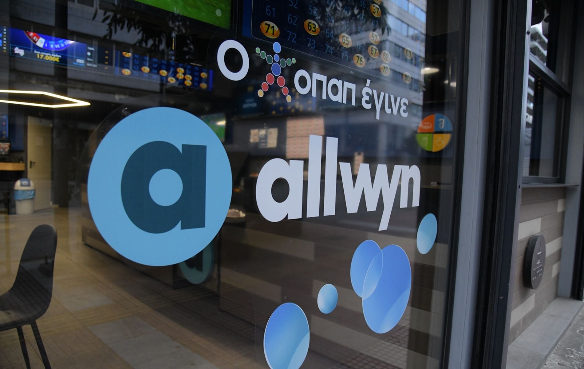 Το brand της Allwyn είναι πλέον άμεσα ορατό σε διάφορα σημεία επαφής με τους πελάτες (π.χ. λογότυπο, πινακίδες, διαδικτυακές σελίδες κλπ.).