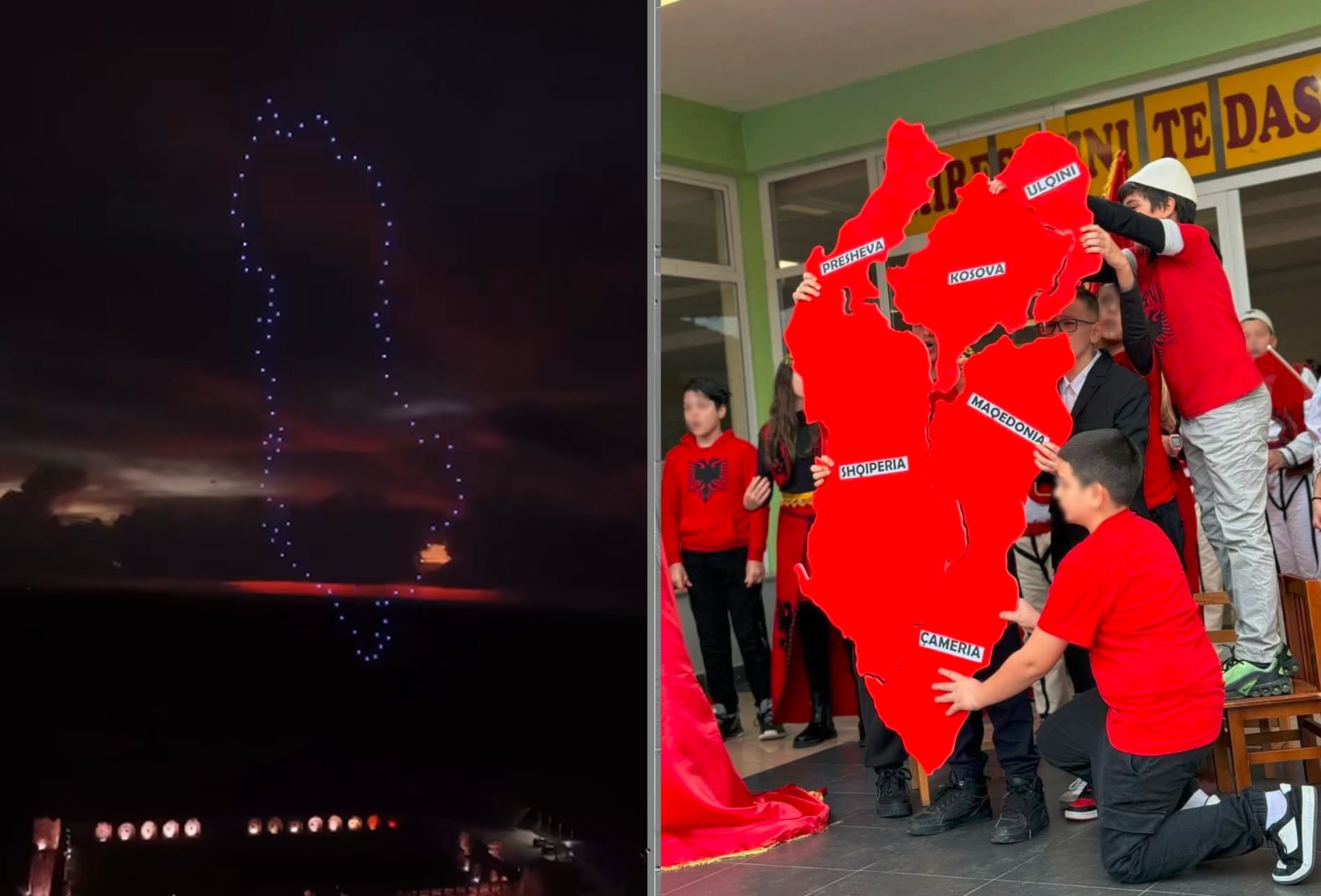 Την ίδια στιγμή, σε άλλο σχολείο μαθητές σχημάτισαν τον χάρτη της λεγόμενης «Μεγάλης Αλβανίας», στον οποίο εμφανίζονται περιοχές γειτονικών κρατών ως δήθεν αλβανικές. Ανάμεσα σε αυτές βρίσκονται και ελληνικά εδάφη, τα οποία οι ακραίοι εθνικιστικοί κύκλοι των Τιράνων αποκαλούν με τον ανυπόστατο όρο «Τσαμουριά».
