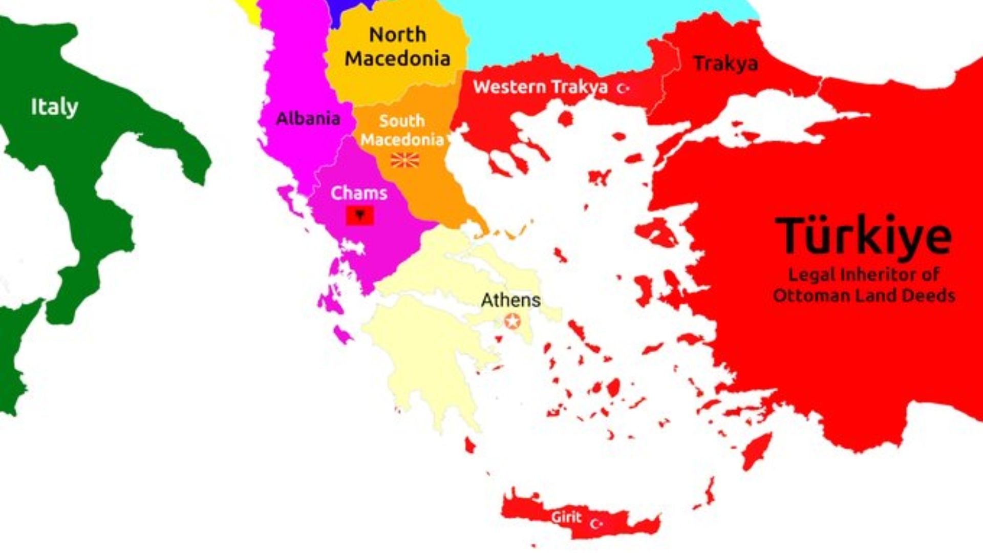 Στο επίκεντρο αυτής της προπαγάνδας βρίσκεται ο ισχυρισμός ότι τα υφιστάμενα σύνορα αποτελούν «ιστορικά σφάλματα» της βρετανικής διπλωματίας. Οι συγκεκριμένοι λογαριασμοί υποστηρίζουν ότι η Τουρκία οφείλει να «αποκαταστήσει την ισορροπία», προβάλλοντας το επιχείρημα ότι μετά από μια ενδεχόμενη σύρραξη, η Τουρκία και η Ιταλία θα πρέπει να καταστούν θαλάσσιοι γείτονες, εκμηδενίζοντας ουσιαστικά την ελληνική παρουσία στο Αιγαίο.