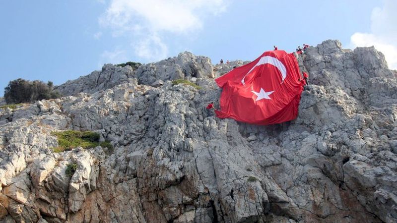 Σε νησίδα που βρίσκεται απέναντι από τα Ίμια, Τούρκοι οργάνωσαν ένα φαντασμαγορικό show για την ύψωση μιας τουρκικής σημαίας ανήμερα της δικής τους εθνικής επετείου (29 Οκτωβρίου).