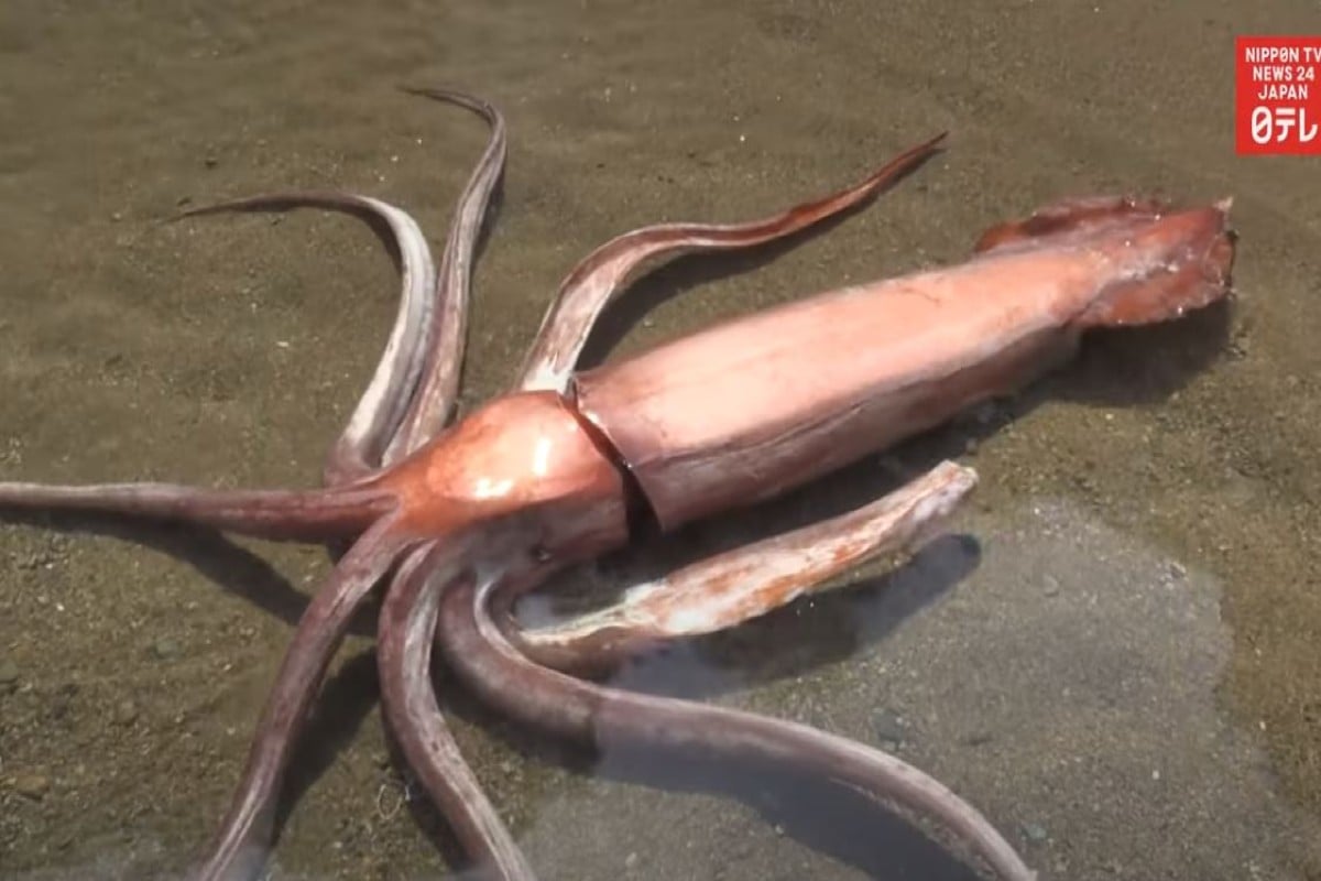 Δεν πίστευαν στα μάτια τους οι ντόπιοι στην Δυτική Ιαπωνία, όταν ένα γιγάντιο καλαμάρι μήκους 3,35 μέτρων ξεβράστηκε ζωντανό στην ακτή. Ζυγίζει 80 κιλά και μεταφέρθηκε σε ενυδρείο.