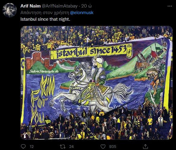 Με το που έκανε την ανάρτηση, «έσκασε» ένα… τσουνάμι τουρκικών αντιδράσεων με ύβρεις, σχόλια και επικρίσεις κατά του Μασκ, κυρίως για την αναφορά του στην Κωνσταντινούπολη με το… κανονικό της όνομα.