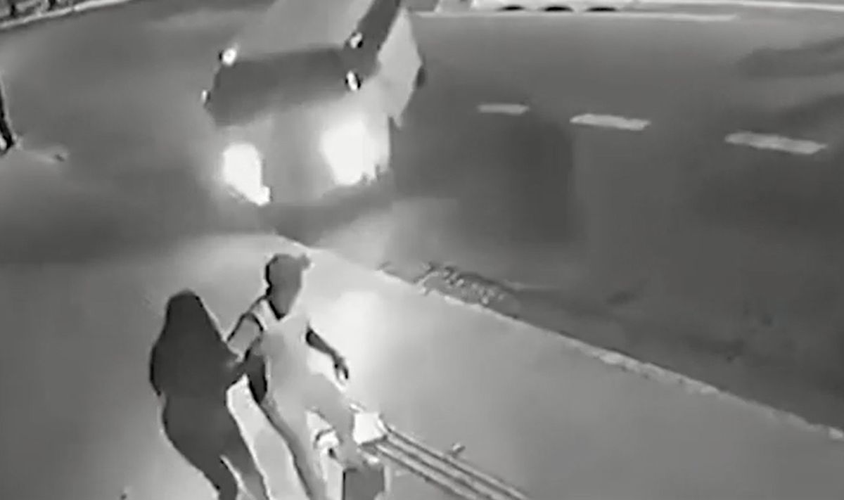 Σε ένα άλλο περιστατικό, την ίδια μέρα, στην ίδια πόλη, ένα νεαρό ζευγάρι βρισκόταν στο πεζοδρόμιο με τον άνδρα να φιλά την κοπέλα του, την ώρα που ένα διερχόμενο αυτοκίνητο έπεσε πάνω τους και τους παρέσυρε 20 μέτρα!