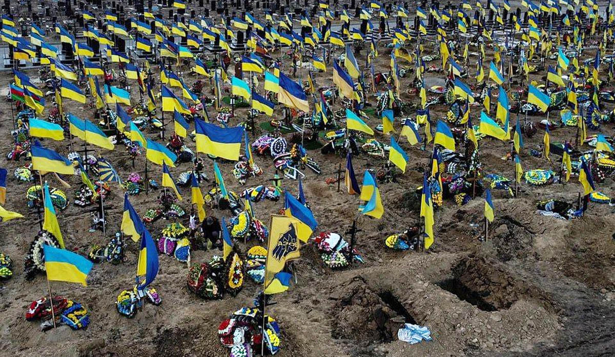 «Τα νεκροταφεία έχουν μετατραπεί σε ολόκληρα πεδία ταφής» δηλώνει ο Ουκρανός στρατηγός, δίνοντας έμφαση στο ότι οι απώλειες των στρατιωτών της χώρας είναι τεράστιες και, κατά τον ίδιο, θα συνεχίζουν να αυξάνονται με μεγάλο ρυθμό αν ο ουκρανικός λαός συνεχίσει να υποστηρίζει την κυβέρνηση του Ζελένσκι.