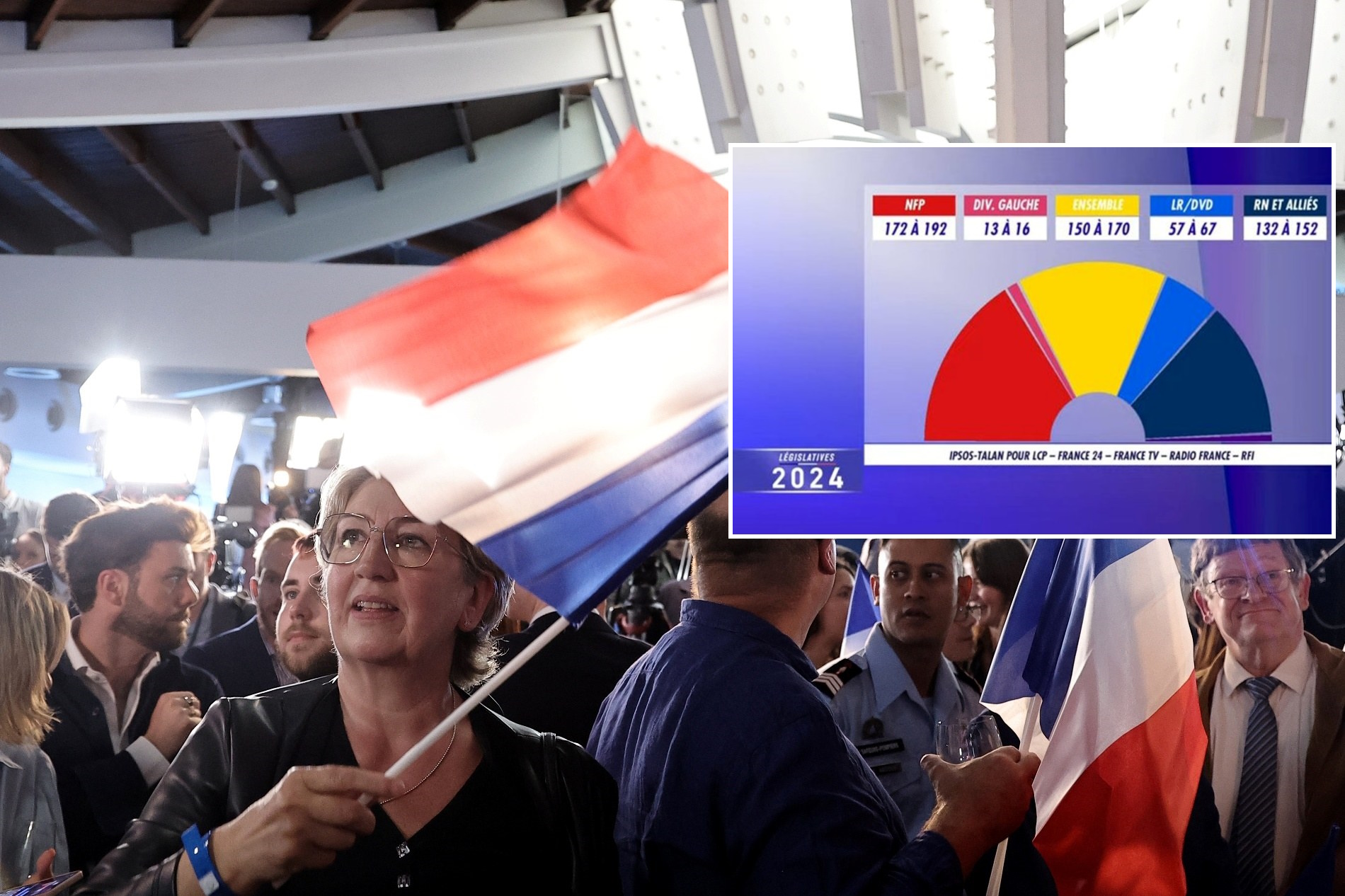 1. NFP (Left Union) arrives first with 172 to 192 seats