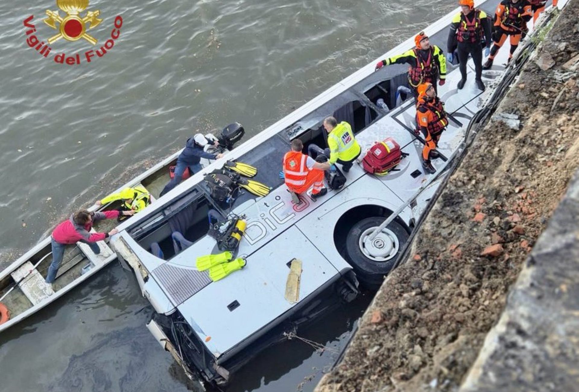 Το λεωφορείο της Di Carlo Tours λίγο μετά τις 5:30 μ.μ. στο ύψος του τμήματος Murazzi, λίγα μόλις μέτρα από την γέφυρα Gran Madre, βρέθηκε στο νερό.