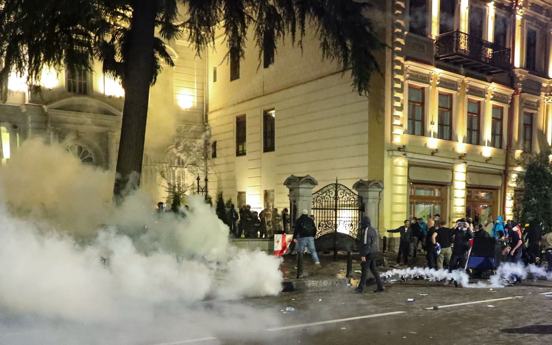 #UPDATE Georgian police on Saturday fired tear gas at anti-government protesters who tried to enter the presidential palace, as tens of thousands rallied on local elections day after the opposition urged a “last chance” protest to save democracy.”https://t.co/kZFhZ3b9cs pic.twitter.com/AySP6knSAK