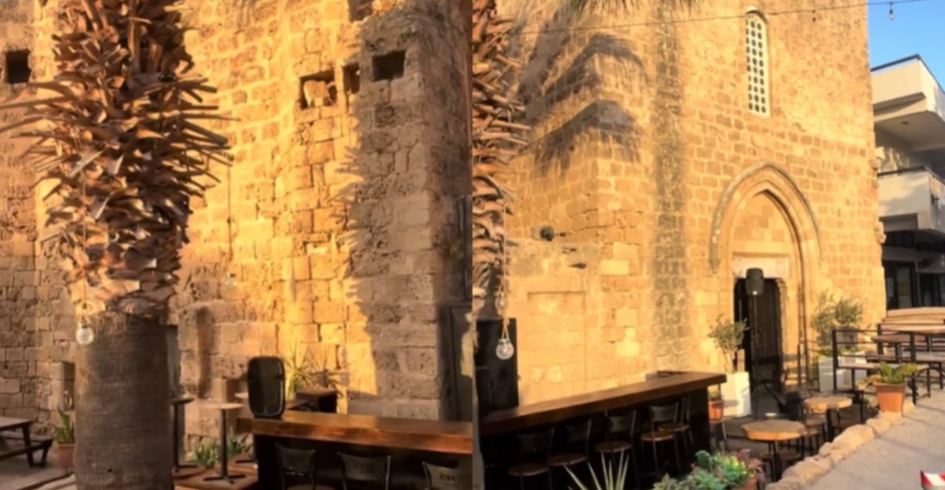 Στο βίντεο, που έχει γίνει viral στο TikTok, φαίνεται η ιστορική εκκλησία του Αγίου Ιωάννη του Ναΐτη, στο προαύλιο της οποίας έχουν τοποθετηθεί τραπεζάκια και καρέκλες, ενώ εργάτες πραγματοποιούν εργασίες διαμόρφωσης του χώρου. Σε ένα σημείο, ένας από αυτούς φαίνεται να μεταφέρει μαξιλάρια, πιθανόν για τη νέα χρήση του κτηρίου.