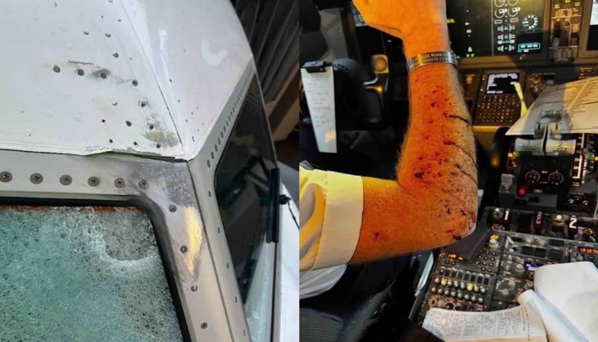 Άγνωστο αντικείμενο έπεσε πάνω στο παρμπρίζ και το έσπασε! Ο πιλότος τραυματίστηκε στο χέρι και το κοκπιτ γέμισε τα θραύσματα. Το αεροπλάνο έκανε αναγκαστική προσγείωση στο Σολτ Λέικ.