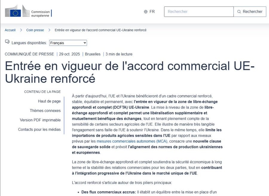 🇪🇺 📌Μια συμφωνία που ανοίγει οριστικά την ευρωπαϊκή αγορά στα ουκρανικά αγροτικά προϊόντα τέθηκε σε ισχύ στις 29 Οκτωβρίου.