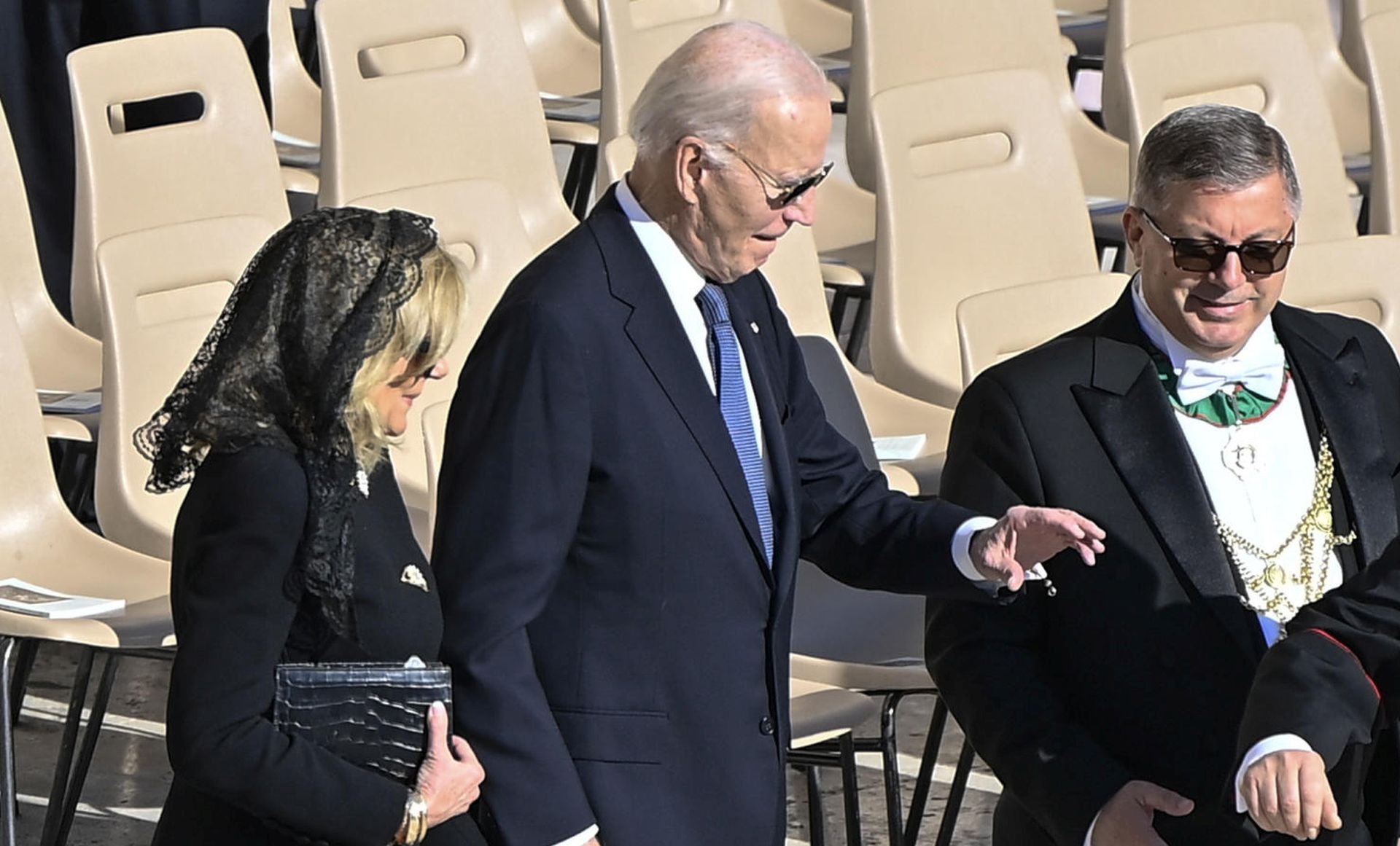 Έκπληκτοι οι θαμώνες είδαν τον Μπάιντεν να περπατάει με δυσκολία, γερασμένος και εξασθενημένος.