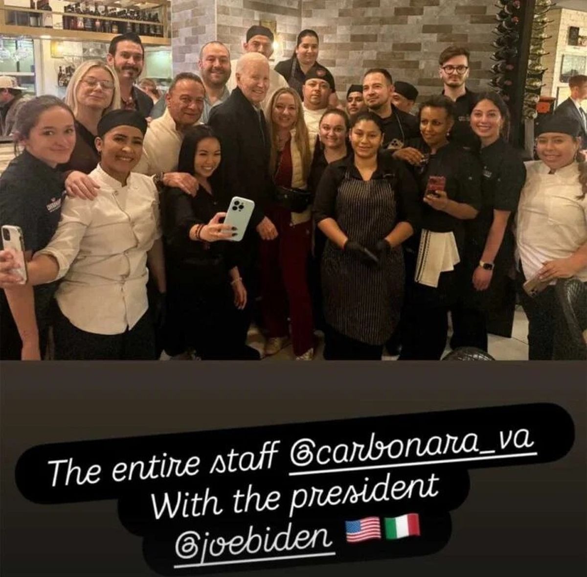 Πάντως προτού αποχωρήσει, ο Μπάιντεν φωτογραφήθηκε με το προσωπικό του εστιατορίου.
