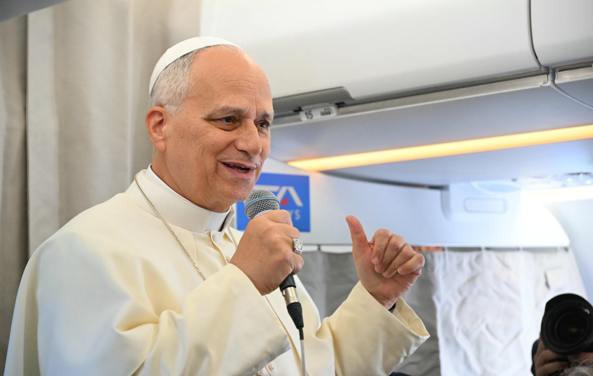 Η συνέντευξη Τύπου που παραχώρησε εν ώρα πτήσης ο πρώτος Αμερικανός ποντίφικας στην ιστορία, διήρκεσε μόλις οκτώ λεπτά, και στο πλαίσιό της εστίασε στην επίσκεψή του στην Τουρκία, η οποία ήταν και η πρώτη επίσημη αποστολή του στο εξωτερικό μετά την εκλογή του τον Μάιο.