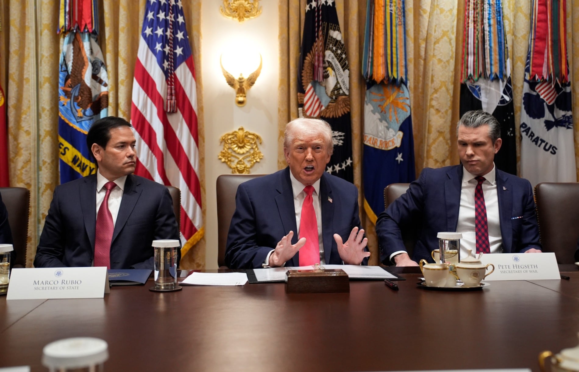 «Θα αρχίσουμε να κάνουμε αυτές τις επιθέσεις και στην ξηρά», δήλωσε κατά τη διάρκεια συνεδρίασης του Υπουργικού Συμβουλίου. «Ξέρουμε πού ζουν. Ξέρουμε πού ζουν οι κακοί, και θα αρχίσουμε πολύ σύντομα», ανέφερε.