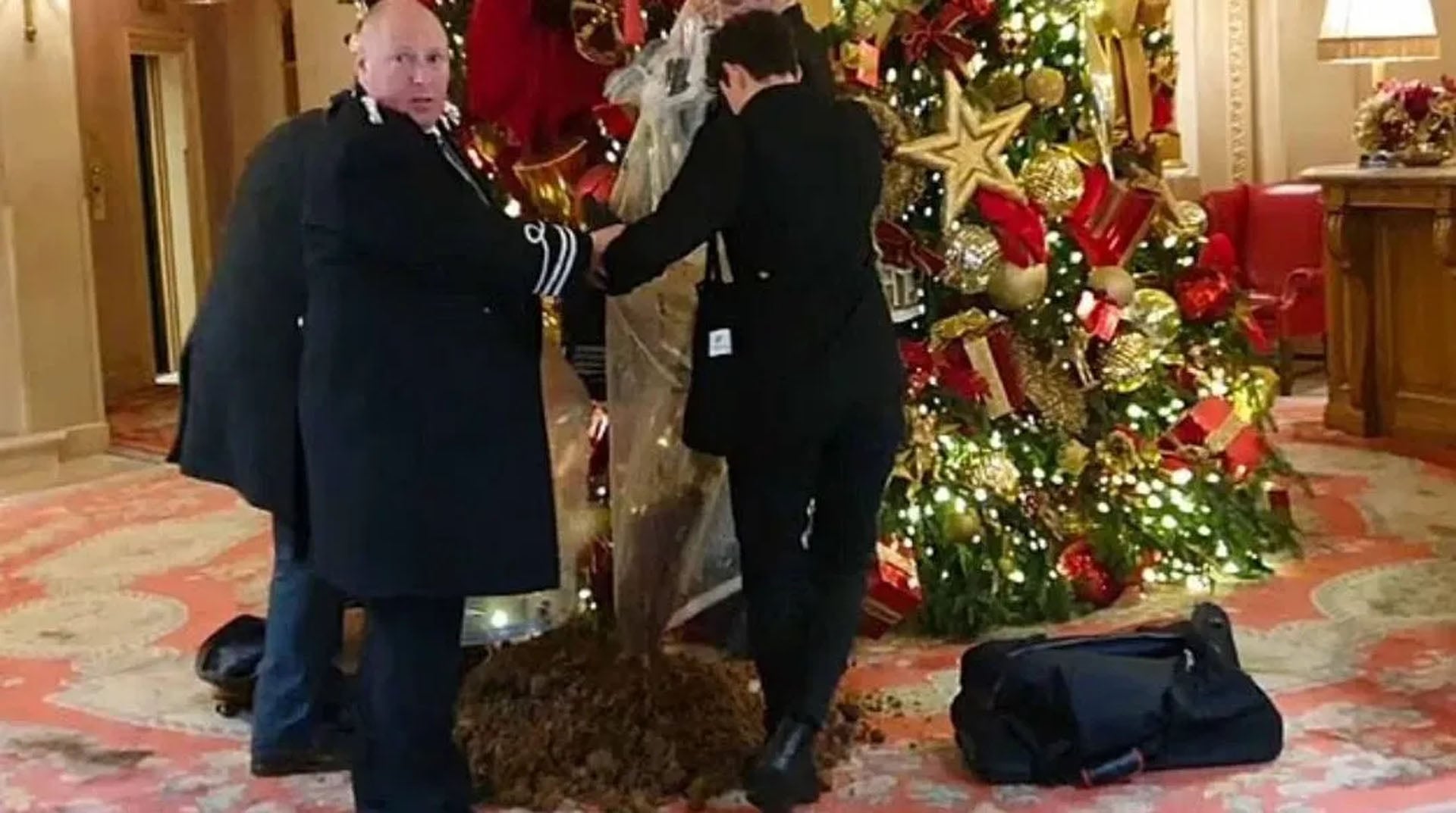 Άνοιξαν τις βαλίτσες και αναποδογύρισαν το περιεχόμενο κάτω από το χριστουγεννιάτικο δέντρο, πριν προλάβουν να επέμβουν υπάλληλοι του Ritz για να τους απομακρύνουν.