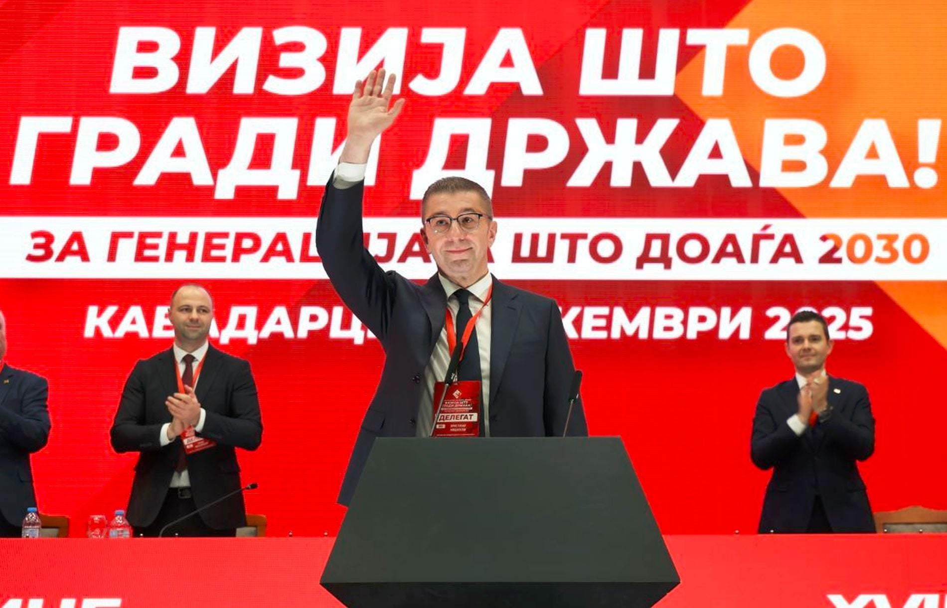 Ο Σκοπιανός κέρδισε μια κούρσα στην οποία έτρεχε μόνος του και είδε να επανεκλέγεται ομόφωνα στην ηγεσία του εθνικιστικού κόμματος, επισημαίνοντας ότι έως το 2030 πρέπει να γίνει μια ριζική αλλαγή στη «Μακεδονία», όπως επαναλάμβανε συνεχώς: Από μια οικονομία που βασίζεται στη φθηνή παραγωγή, σε μια οικονομία που βασίζεται στην τεχνογνωσία, τις προηγμένες δεξιότητες και τη δημιουργία υψηλής προστιθέμενης αξίας.
