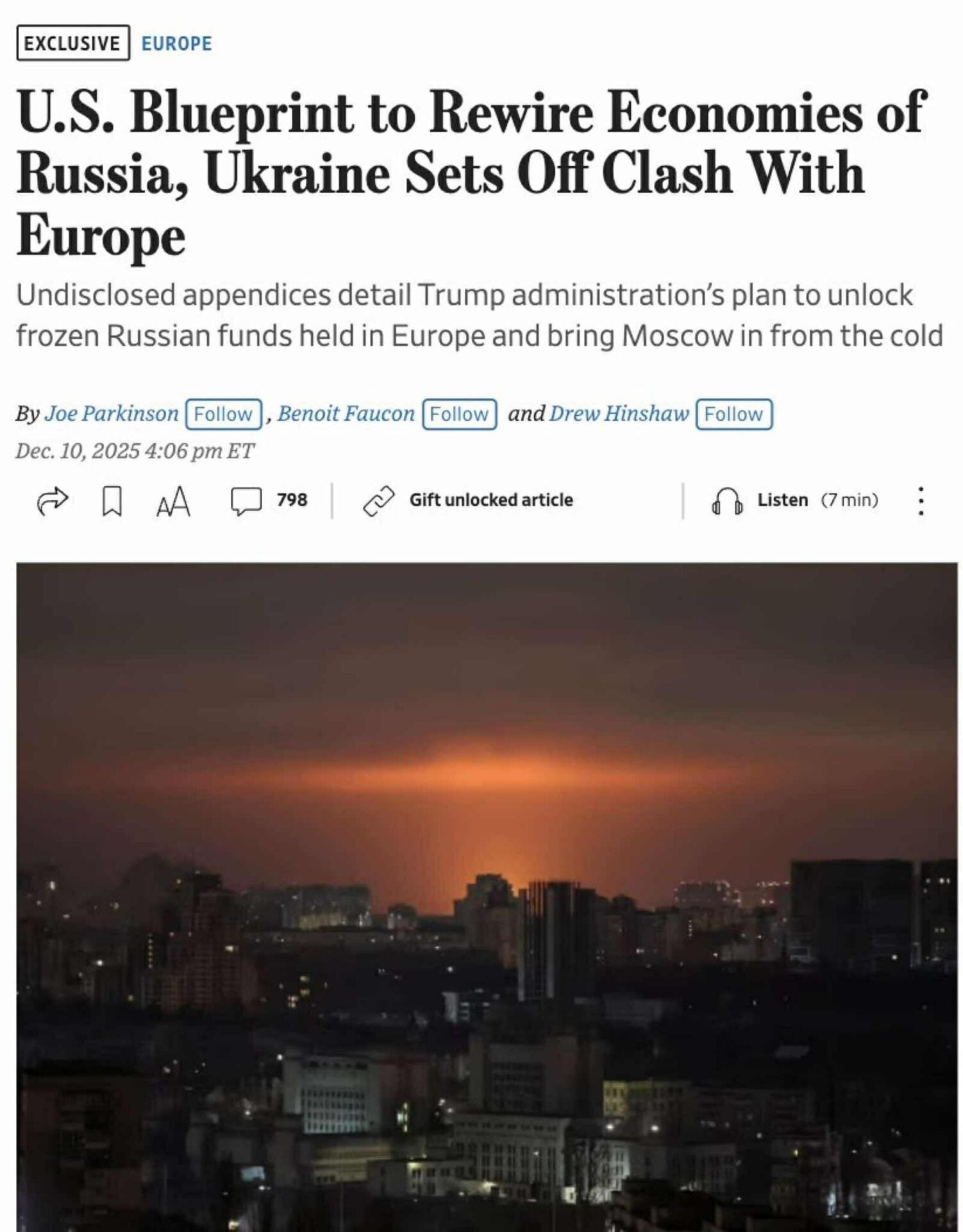 Η κυβέρνηση Τραμπ έδωσε στην Ευρώπη ένα μονοσέλιδο (!!) σχέδιο για την ανοικοδόμηση της Ουκρανίας χρησιμοποιώντας περίπου 200 δισεκατομμύρια δολάρια από «παγωμένα» ρωσικά περιουσιακά στοιχεία, ενώ παράλληλα σκιαγράφησε μια πορεία για την επανένταξη της ρωσικής οικονομίας με σημαντικές αμερικανικές επενδύσεις.