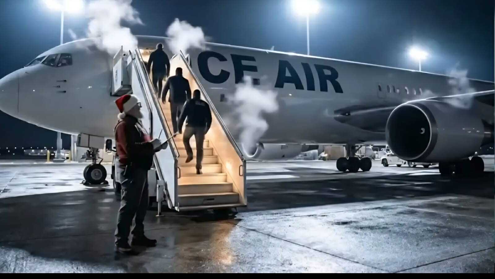 Στη συνέχεια, ο Άγιος Βασίλης υποβάλλει τον παράνομο αλλοδαπό σε μια ομοσπονδιακή εγκατάσταση πριν τον φορτώσει σε ένα αεροπλάνο της “ICE Air” για να απελαθεί.