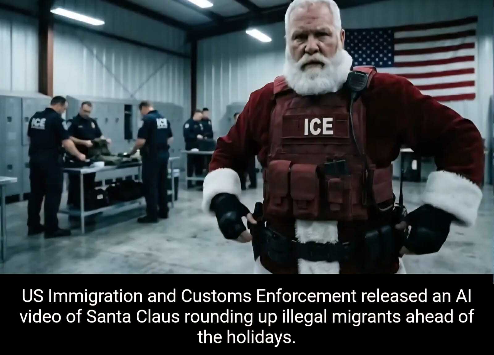 Έγινε και αυτό… Η Υπηρεσία Μετανάστευσης και Τελωνείων των ΗΠΑ δημοσίευσε βίντεο που προσποιείται ότι δείχνει τον Άγιο Βασίλη να μαζεύει παράνομους μετανάστες, προειδοποιώντας τους μάλιστα να φύγουν οικειοθελώς πριν καταλήξουν στη λίστα με τους άτακτους.