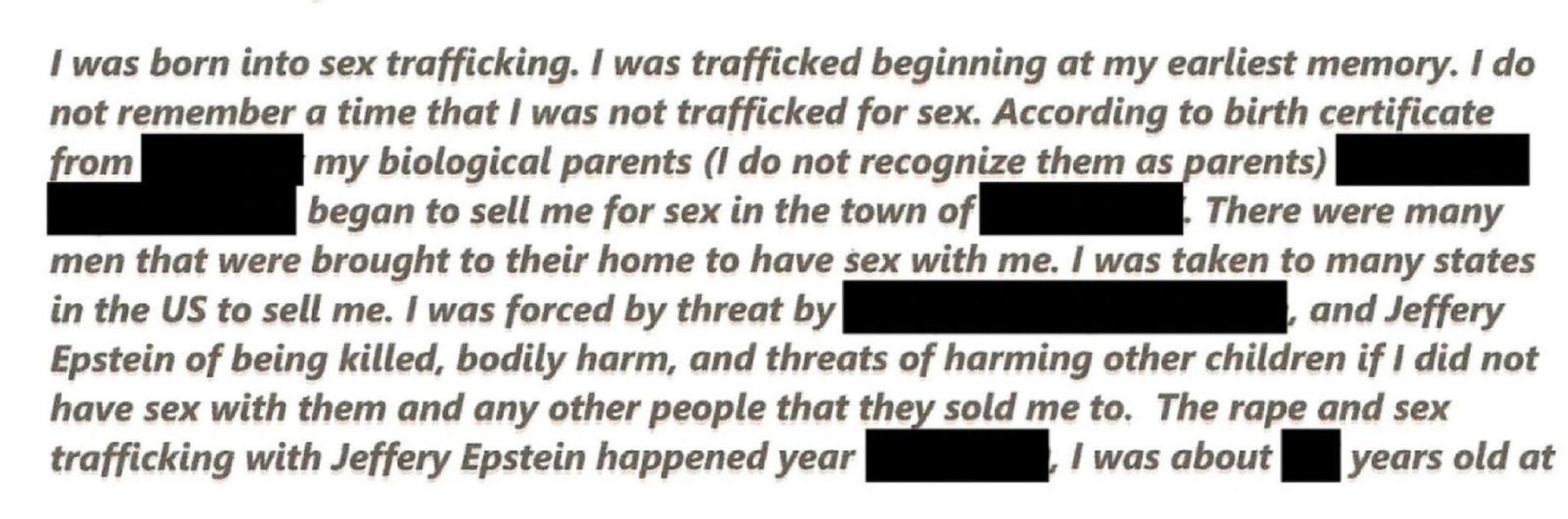 Οι λεπτομέρειες των εγγράφων προκαλούν σοκ, καθώς αποτυπώνουν μια συστηματική εκμετάλλευση ανηλίκων, με στόχο τη διευκόλυνση ενός ευρύτερου διεθνούς δικτύου κακοποίησης. Οι αμερικανικές αρχές θεωρούν ότι η υπόθεση αυτή αποτελεί μία από τις πιο σοβαρές διεθνείς έρευνες για σεξουαλική εκμετάλλευση παιδιών των τελευταίων δεκαετιών.