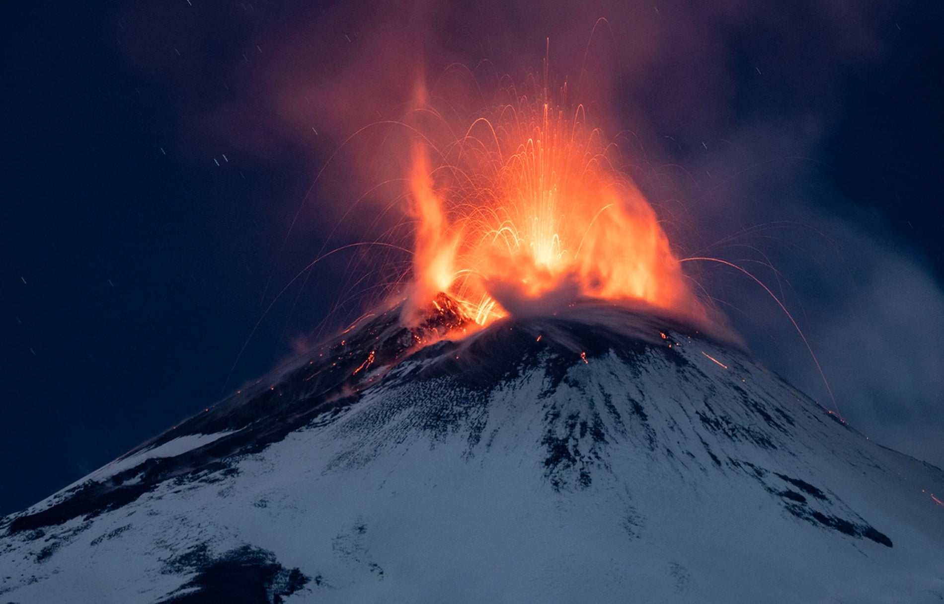 Πρωτοχρονιάτικη έκρηξη στην Αίτνα – Ποτάμια λάβας στο χιονισμένο όρος