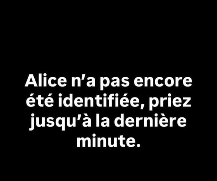 «Η Αλίκη δεν έχει ακόμη ταυτοποιηθεί, προσευχηθείτε μέχρι το τελευταίο λεπτό» έγραψε ο Ρομέν Καλλέργης, αδερφός της Αλίκης, στο Instagram.