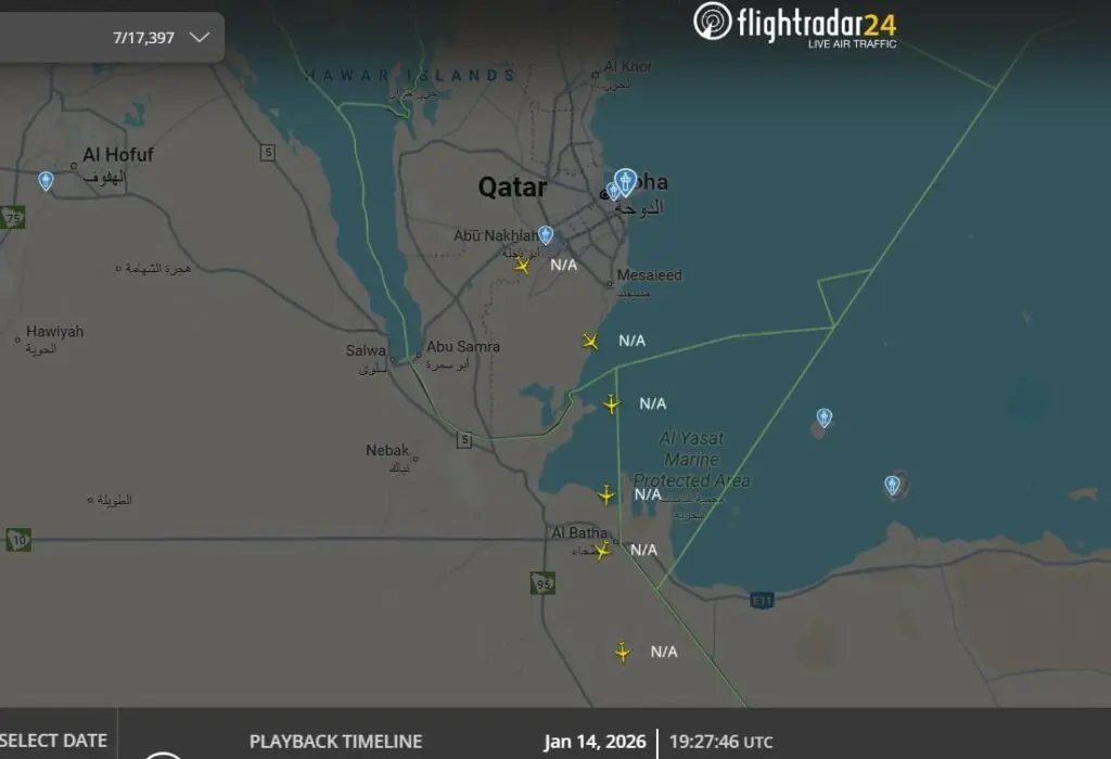 Το επίκεντρο του ενδιαφέροντος στράφηκε στην αεροπορική βάση Al Udeid στο Κατάρ. Σύμφωνα με τα διαθέσιμα στοιχεία, λίγο μετά τις 20:02 UTC, δύο στρατηγικά μεταγωγικά αεροσκάφη USAF C-17A Globemaster III, τα οποία είχαν ως προορισμό την αεροπορική βάση των Χανίων (LGSA), έλαβαν αιφνιδιαστική εντολή.