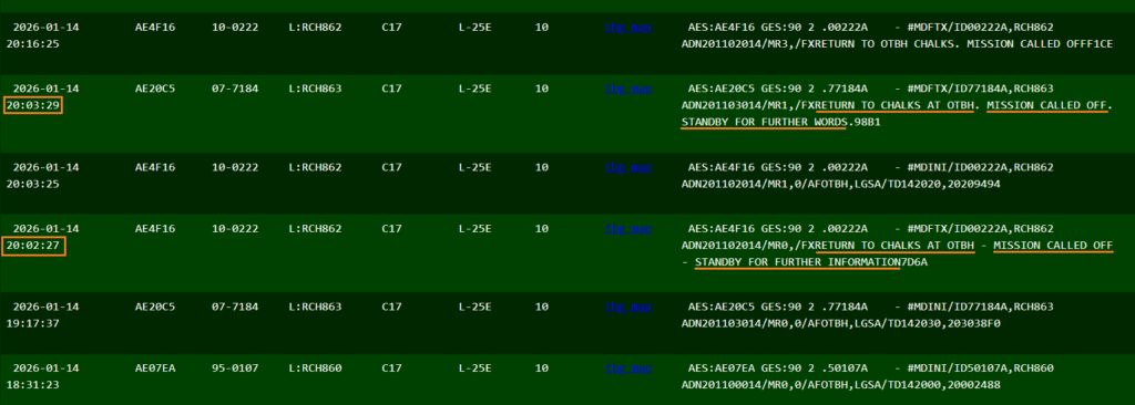 Συγκεκριμένα, στα πληρώματα δόθηκε η οδηγία να «επιστρέψουν στα chalks» (δηλαδή στις θέσεις στάθμευσης), με αποτέλεσμα η αποστολή τους προς την Κρήτη να ακυρωθεί προσωρινά. Οι πληροφορίες αναφέρουν ότι οι δυνάμεις παραμένουν σε καθεστώς άμεσης αναμονής για νέες οδηγίες.