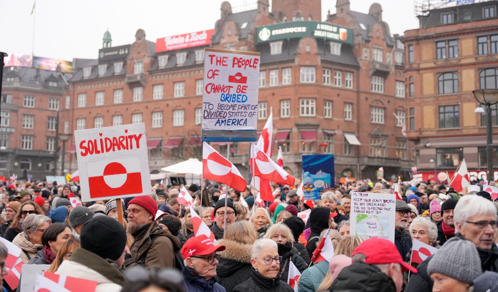 Χιλιάδες διαδηλωτές συγκεντρώθηκαν το Σάββατο (17/1) στην Κοπεγχάγη, εκφράζοντας την αντίθεσή τους στις επανειλημμένες δηλώσεις του Ντόναλντ Τραμπ σχετικά με την πρόθεσή του να αποκτήσει τη Γροιλανδία. Υπό συννεφιασμένο ουρανό, πλήθος κόσμου κατέκλυσε την πλατεία του δημαρχείου της δανικής πρωτεύουσας.